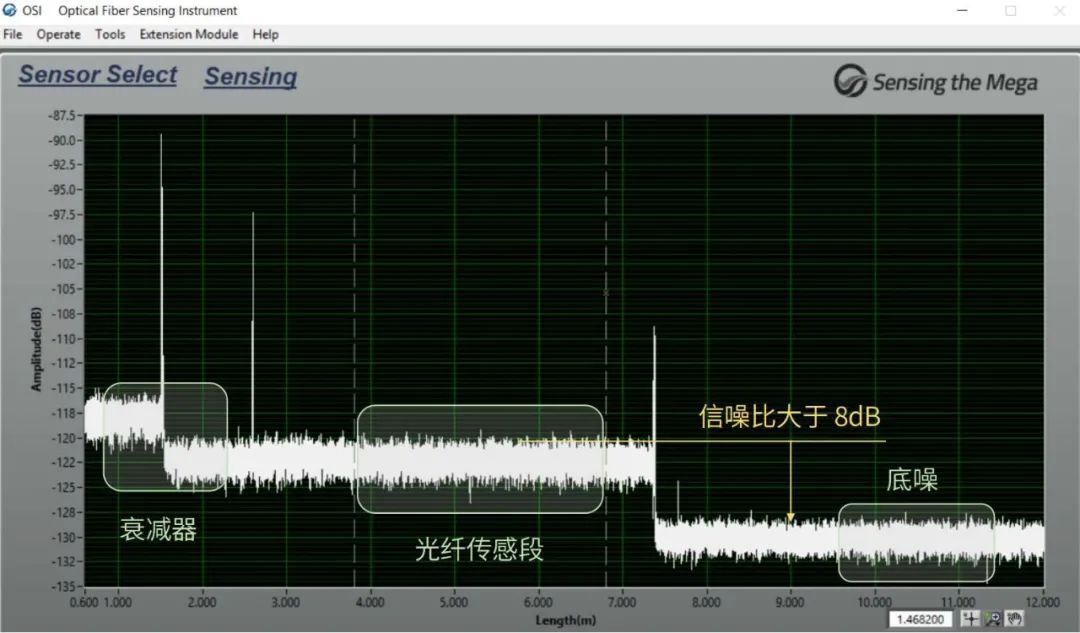✔测试前先判断光纤链路损耗是否在合理范围内。若链路有少量损耗且信噪比大于8dB,OSI传感测量不受影响,若信噪比低于8dB,此时系统可测的应变范围有所下降,建议查找原因、排除故障、降低损耗后再测试。